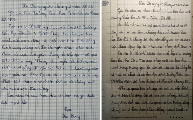 Những bức thư với lời lẽ hồn nhiên và sự quan tâm chân thành của các bạn học sinh như Bảo Thy của trường Tiểu học Lê Văn Tám (quận Hai Bà Trưng, Hà Nội) và bạn Hiền Giang trường Tiểu học Trần Quốc Toản (quận Hoàn Kiếm, Hà Nội) được đăng tải đã chạm tới trái tim của cả thảy mọi người, đặc biệt là các bạn học sinh ở xã Sơn Lôi, huyện Bình Xuyên, tỉnh Vĩnh Phúc - nơi đang được cách ly để bảo đảm phòng dịch .
